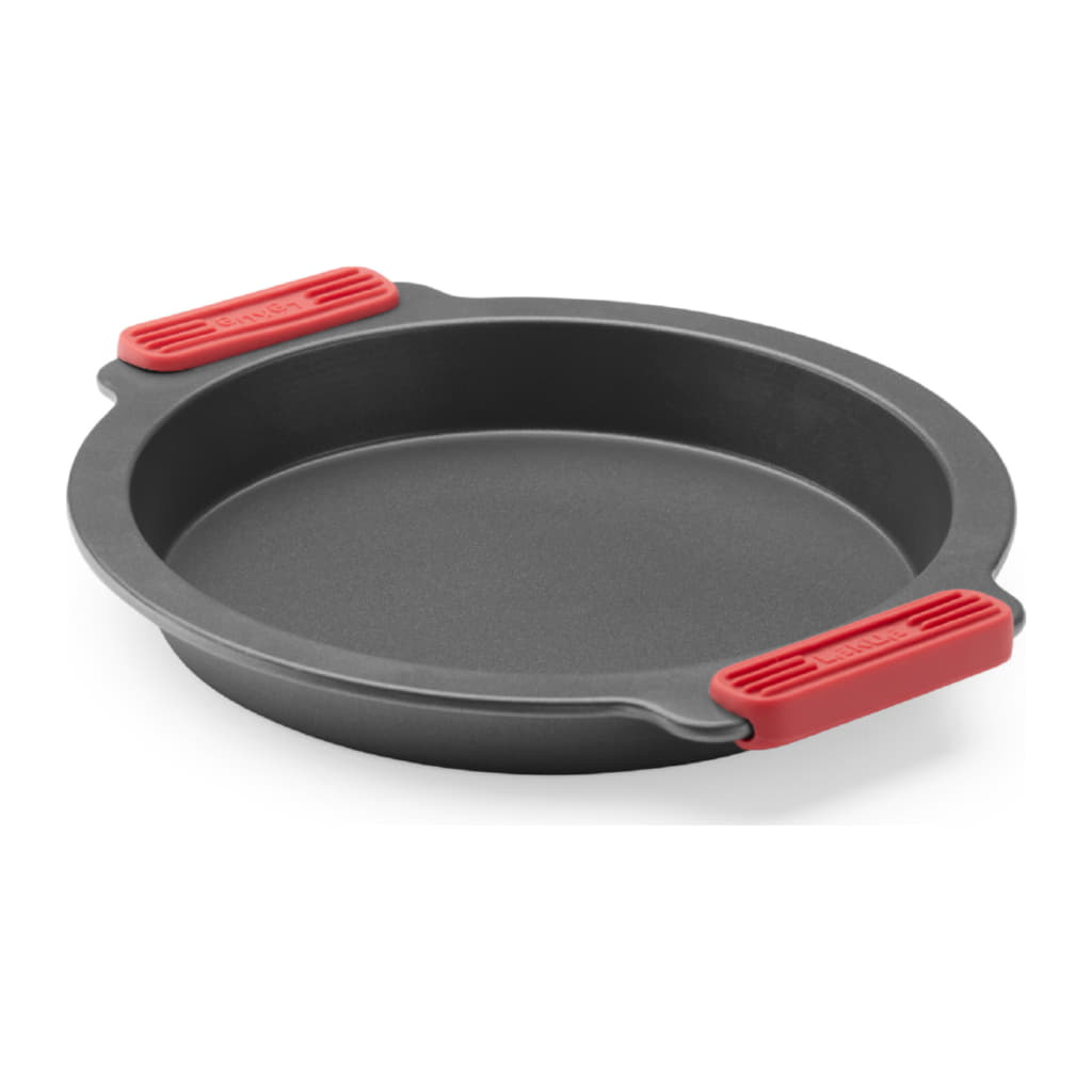 Non-stick, rund bakform med 23 cm omkrets tillverkad i kolstål. Det högkvalitativa kolstålet ger en jämn värmefördelning och är värmebevarande. Formen har en keramisk non-stick beläggning i två lager, vilket gör att det du bakar inte fastnar i formen och att den är enkel att rengöra. Formen är mycket hållbar och resistent mot repor och smällar. Non-slip handtag täckta i silikon för optimalt grepp.