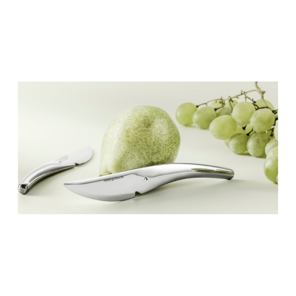 Fruktknivar designade av Per Finne är knivar för att skala och skära frukt och grönsaker. Knivbladet är tillverkat av rostfritt stål för att motstå fruktsyra. Skåran i kniven gör det lättare att skära frukt och grönsaker exakt. Polerad finish.