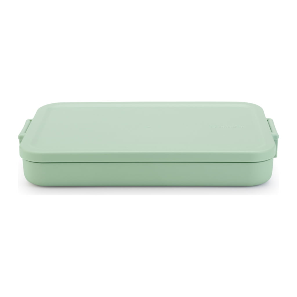 Det är billigare, hälsosammare och enklare att ta med sig lunchen i den här platta Make & Take Matlådan från Brabantia. Den här platta matlådan är gjord för att passa in i facken i din väska eller ryggsäck. Den har ett lock med clips för att säkert rymma upp till 4 smörgåsar! Ett snyggt och återanvändbart alternativ till plastpåsar och förpackade luncher. Njut av det!