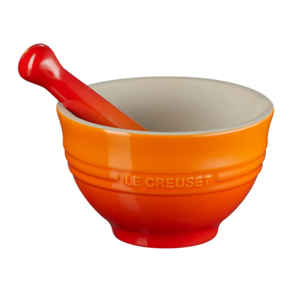 Med en mortel i stengods från Le Creuset kan du sätta ännu mer smak på maten med nystötta kryddor och örter. Morteln är rymlig så det finns gott om plats att stöta kryddorna och tillsätta fler under gång. Mortelns insida och stötens ände är oglaserade vilket ger optimal effektivitet och hygien. Stengods absorberar inte smak eller färg från dina kryddor. Tål maskindisk.