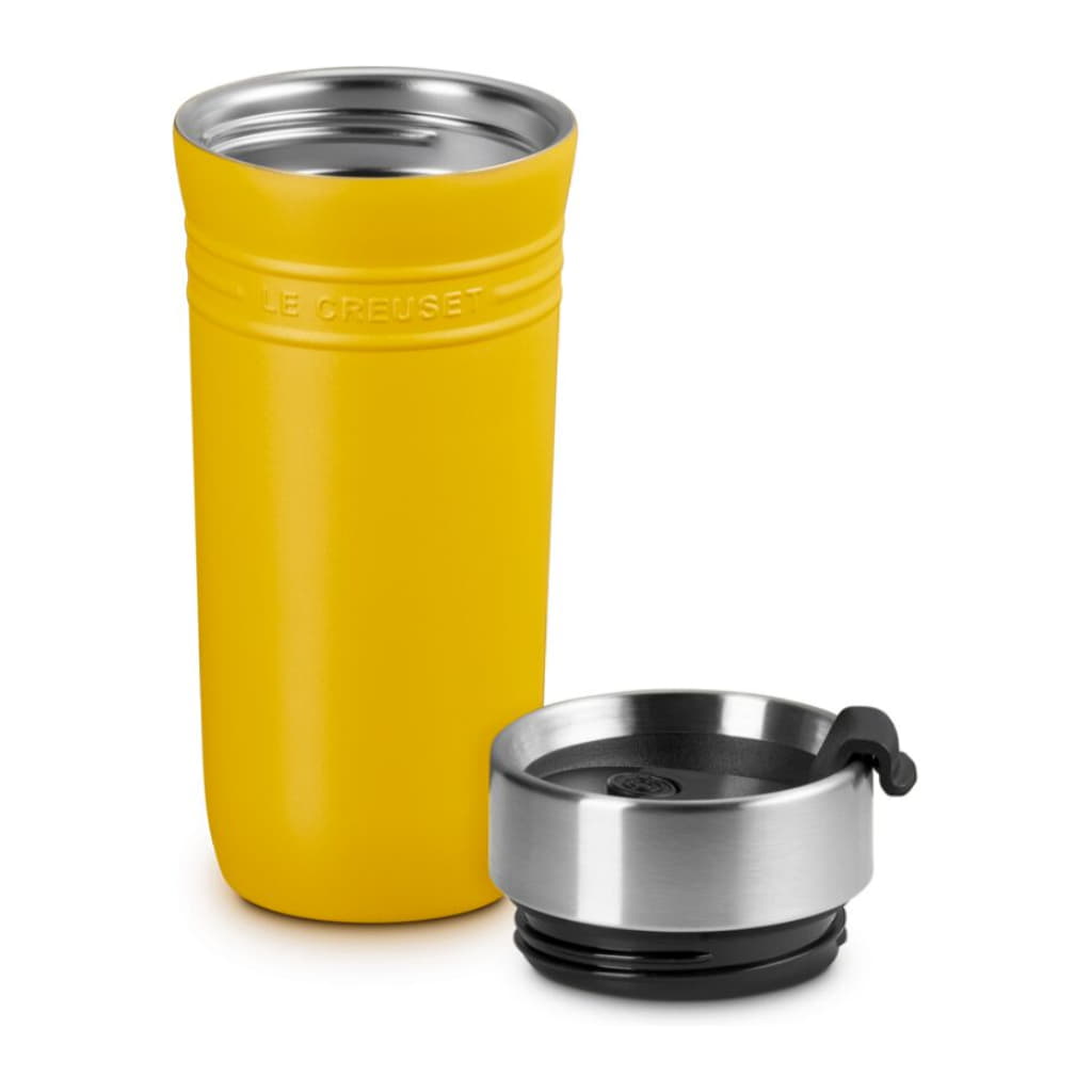 Håll dina varma drycker varma från pendlingen till kontoret med resemuggen på 350 ml från Le Creusets On the Go-kollektion. Tack vare dubbelväggsisolering kan du njuta av din dryck i rätt temperatur. Ett anpassat öppningssystem gör det enkelt att öppna med en hand – perfekt för hektiska morgnar. Det läckagesäkra locket minimerar spill, så att du kan bära med dig muggen tryggt överallt. Den stora öppningen gör rengöringen smidig. Finns i flera färger som passar alla stilar – denna resemugg är den perfekta accessoaren som är både snygg och funktionell.