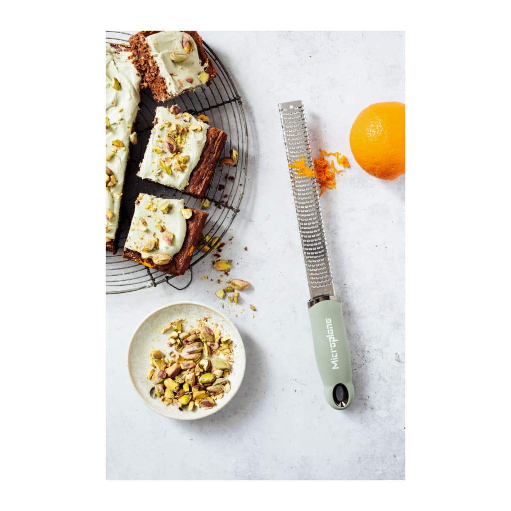 Fint rivjärn. Lämpligt för bl.a. citrusskal, vitlök, parmesan, muskot och lök. Softgriphandtag