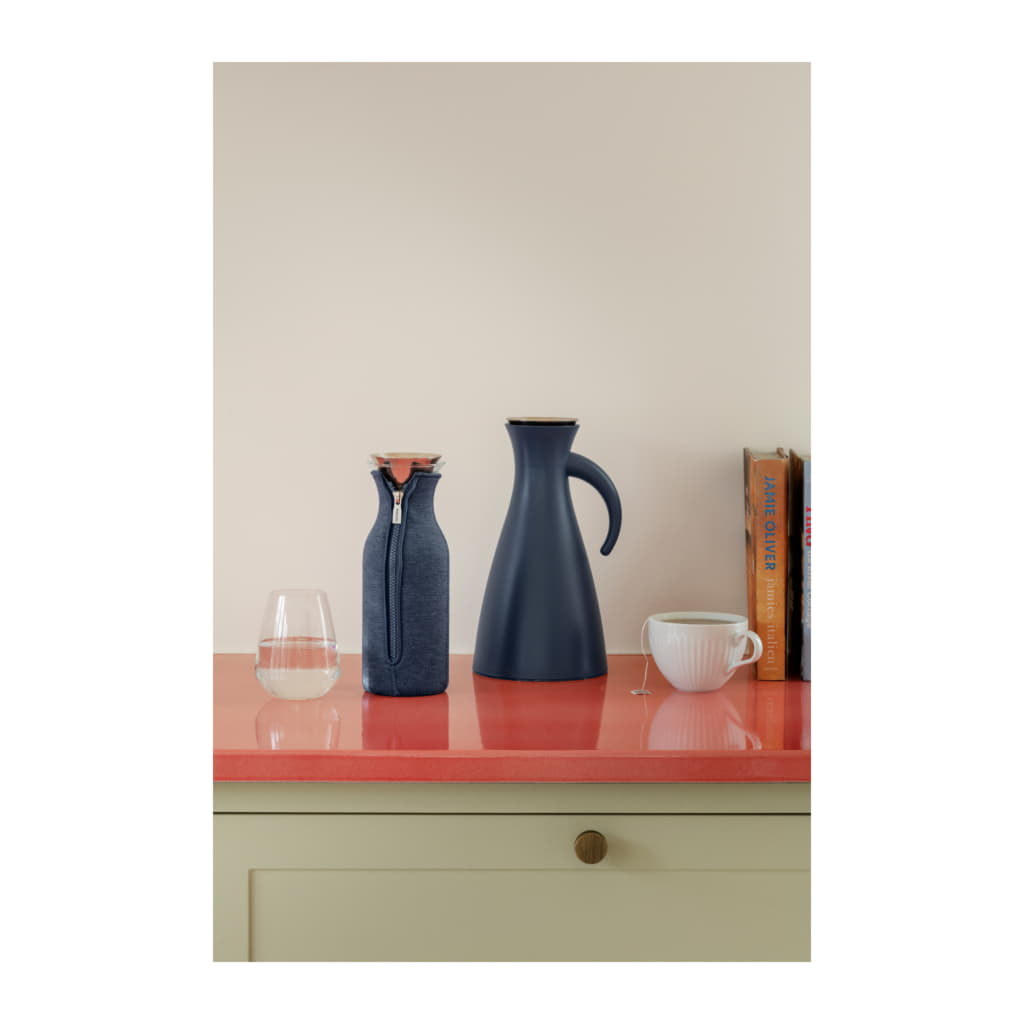 Med den 100 % droppfria termoskannan förenas funktionalitet och design på bästa sätt. Den innovativa hällkragen i rostfritt stål låter dig servera utan spill och den breda öppningen gör det enkelt att fylla på kannan. Termoskannans låga tyngdpunkt ger stabilitet och skruvlocket förhindrar läckage även i horisontellt läge – idealisk för picknick- eller cykelkorgen. Kannan rymmer 1 liter och är tillverkad av robust plast och silikon med en utbytbar glaskolv invändigt.