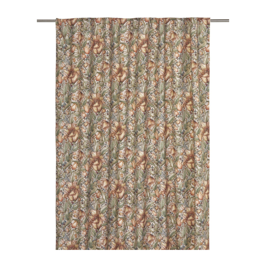 Gardin med tryckt mönster på tyg med inslag av linne. 2-pack multibanlängd med multiband i ovankant, fållade långsidor och overlocksöm i nederkant. Multibandet är en flexibel lösning som gör att gardinen kan hängas upp antingen med fingerkrokar, räkor eller direkt på en stång beroende på vilken typ av veck och vilket fall du vill ha på gardinen. Använd snabbfållningsband för att få önskad längd på gardinen. Måttet är 135x280cm. Kan krympa max 5% på bredden och 1% på längden.
